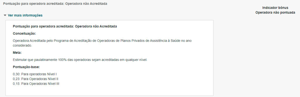 Pontuação bônus de 10% sobre a pontuação da dimensão de Gestão e regulação (IDGR) para as operadoras que ficarem com resultado menor ou igual a 30% .Mede a Qualidade do preenchimento do campo relativo a Classificação Estatística Internacional de Doenças e Problemas Relacionados com a Saúde – CID nas Guias Tiss de internação. Faz a relação entre a quantidade de diagnósticos inespecíficos nos eventos de internação e o total dos eventos de internação com o código CID – incorporados no banco de dados da ANS no período analisado.
